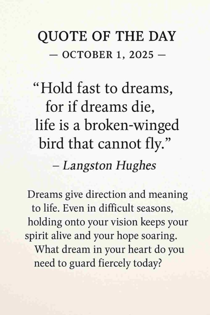 Take one tangible action toward a dream you’ve been postponing—whether it’s writing a single paragraph, making a call, saving a small amount, or sketching a plan. Write it down, commit to it today, and remind yourself: dreams come true not by chance, but by daily choice.